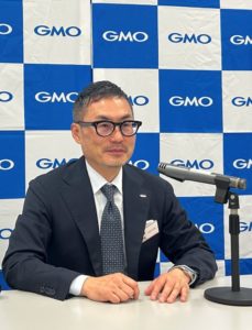 25日、GMOコマースが東証グロース市場に上場した。公開価格の1180円を80.59%上回る2131円の初値を付け、1772円で引けた。山名正人社長が東証で上場会見を行った。